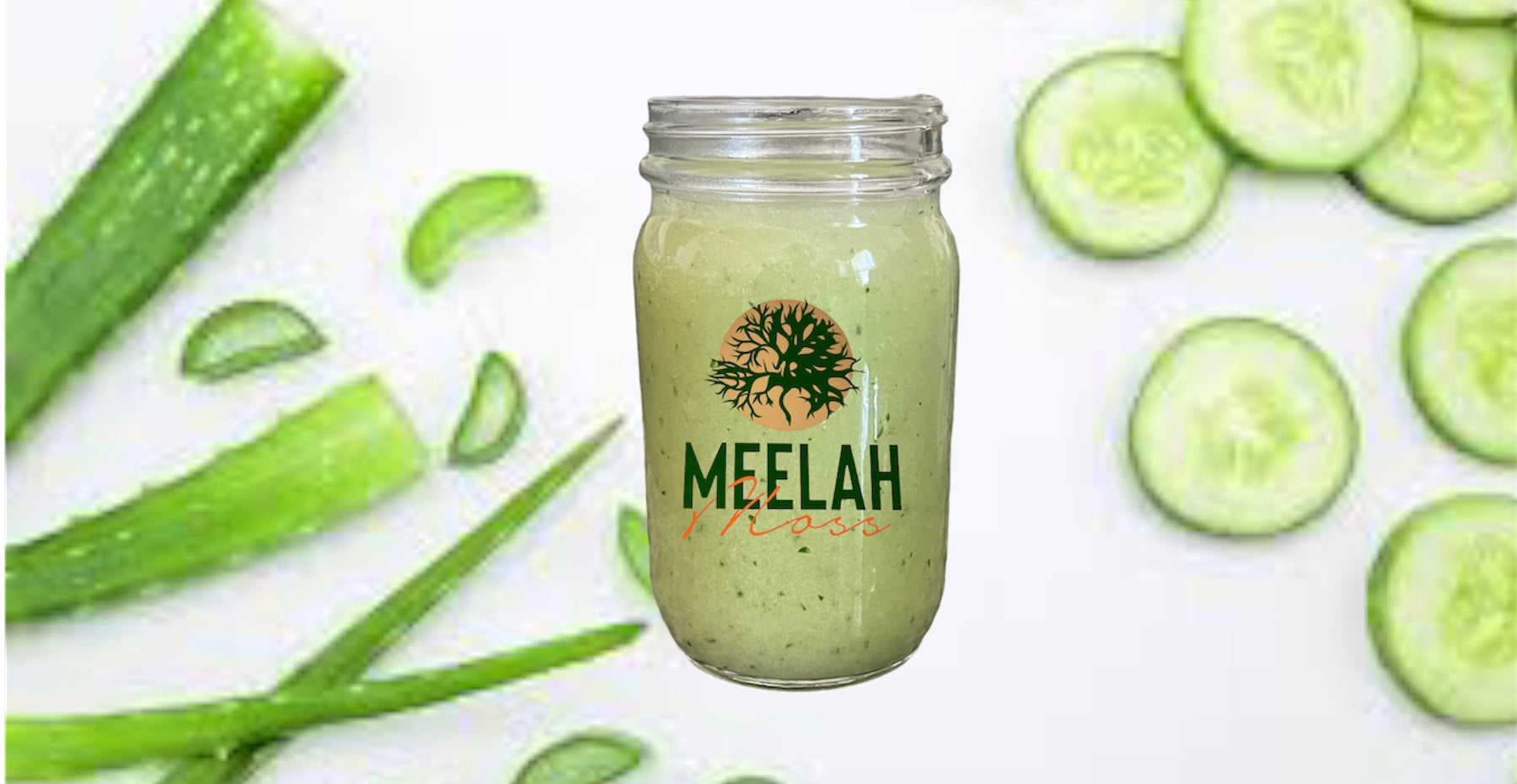 Dried gold sea moss, fresh cucumber, frest aloe Vera, lime and spring water.