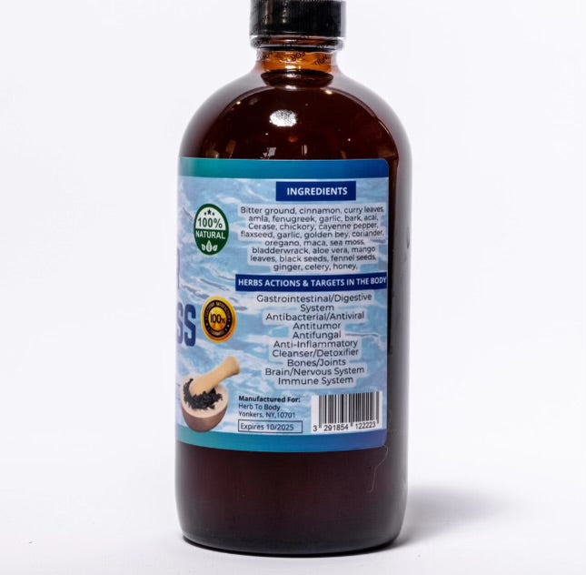 A naturally bitter herbal tonic crafted with wildcrafted Irish Sea Moss, Burdock Root, Bladderwrack, Dandelion, Ginger, and Turmeric—botanicals traditionally used to support overall balance and daily vitality.